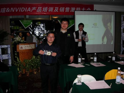 这次经销商会的互动活动也是相当成功,抽奖、有奖问答及现场拍卖一系列活动使得现场气氛十分热烈。幸运的经销商抽得铭瑄极光系列显卡一张。NVIDIA侯宇涛先生为其颁奖。