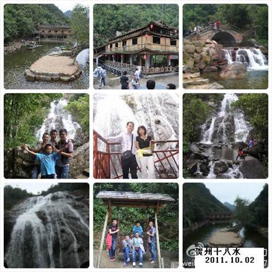 离开姑婆山,旅游大巴将我们带到了“十八水景区”,未进景区就听见潺潺溪水声,原来又是一处山高林深.瀑布成群的清凉去处。。我们沿山路拾阶而上,一路上大小瀑布不断,好景美不胜收。。
