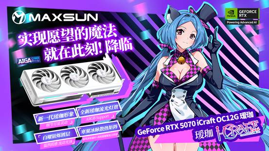 铭瑄 GeForce RTX 5070 iCraft OC12G 瑷珈显卡不仅性能强劲,颜值也十分出众,高度契合玩家的审美需求。外观上延续了温润质感的设计基调,采用全新白曜银烁镀层,通过环保免喷涂注塑工艺,无需化学喷涂即可实现珍珠白渐变闪银效果,从温润乳白到冷峻银辉,每一道光影折射都呈现出独特质感。侧边创新加入星河流光灯条,搭配升级的 ARGB 灯光同步灯效,玩家通过包装附带的 ARGB 5V3Pin 灯光同步线与主板连接,即可实现灯光同步,灯光流转间如同赛博世界的魔法光芒,灵动又吸睛。高强度合金背板不仅为显卡提供了稳固防护,防止显卡因自重而弯曲,还搭载了 Q 版瑷珈灯效,萌力与科技感完美融合,让显卡即便静置时,也能成为桌面一道亮眼的风景。