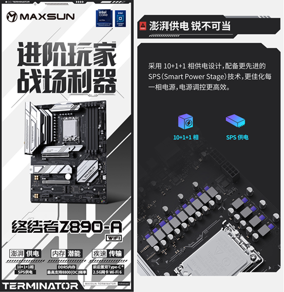 铭瑄Terminator Z890-A WIFI 主板凭借强悍的供电性能、出色的内存潜力、高效的散热系统、丰富的拓展接口、稳定的网络连接、便捷的操作体验和个性化的灯光效果,成为英特尔酷睿 Ultra 200S Plus系列处理器的新芯性能搭档。3 月 26 日新处理器将正式开售,选择铭瑄Terminator Z890-A WIFI 主板,即可解锁新芯满帧战力,从容迎战各类使用场景,开启高效畅快的硬件全新体验。